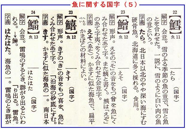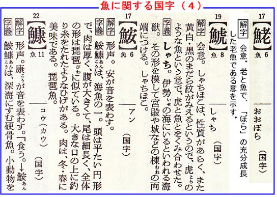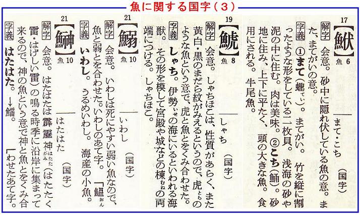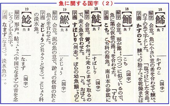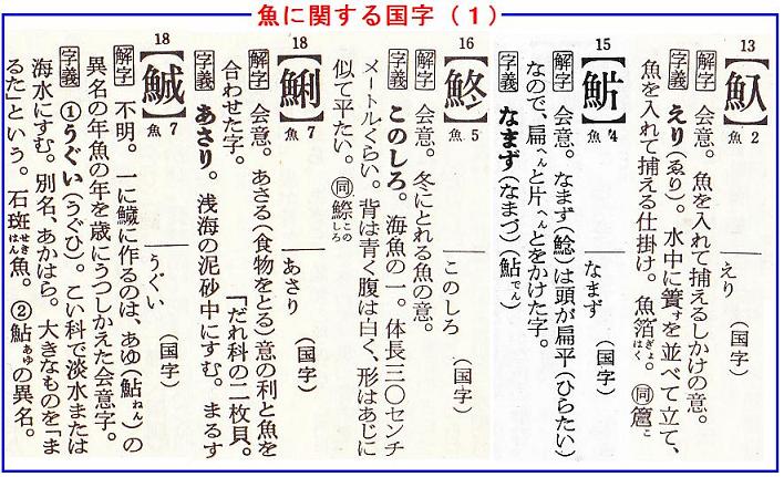 角川の漢和中辞典から、魚に関する国字を20字ばかり拾い出してみたが、まだまだ漢和辞典に掲載されてない国字もあるし、パソコンでは打てない国字も沢山あると思われる。
