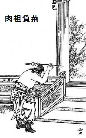廉頗はこのことを聞いて、肌脱ぎになって荊の鞭を背負い、賓客にとりなしてもらって藺相如の門にいたり、謝罪していった。