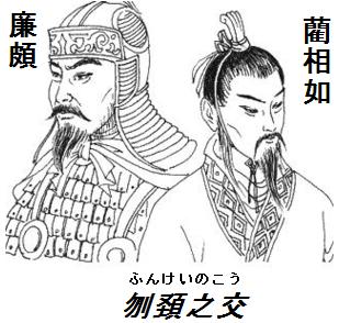 「そもそも、秦王の威をもってしても、私は朝廷でこれを叱り付け、その群臣を辱めたのだ。私が駑鈍だからいって、どうして廉将軍だけをおそれようか。ふりかえって考えてみるに、強秦があえて兵を趙に加えないのは、ただ、わが両人(藺相如と廉頗)がいるからだ。いま、両虎が闘えば、勢いとしてともにはいきられない。私が廉将軍を避けるのは、国家の急を咲きにして私讎(ししゅう)をあとにするからなのだ」