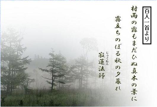 〈訳〉心なき我が身にも、哀れ深い趣は知られるのだった。鴫が飛び立つ沢の秋の夕暮れよ。