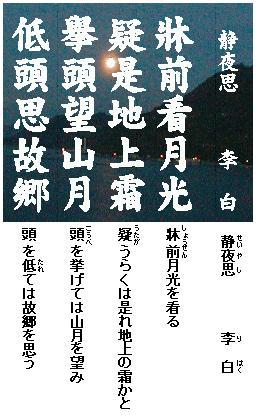 (訳)静かな夜更け、寝床の前に月の光がさし込んでいる。
