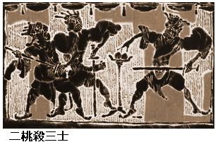 公孫接は天を仰いで嘆じて「晏子は智者である。公に我らのてがらを比べさせたのだ。桃を受けなければ、勇のないことになる。今、三人いるが桃は二つである。どうして功を計って桃を食わないことがあろうか。