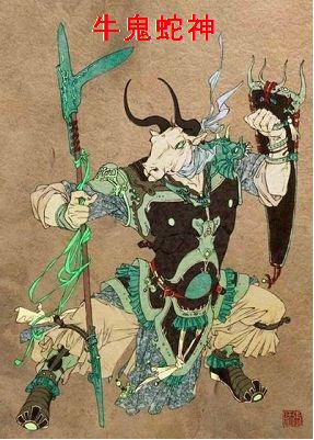 左手にそえ馬を操り、右手に大すっぽんの頭をひっさげて踊り出た。渡しもりたちは皆河伯であると言い、これを見たら大すっぽんの首であった。