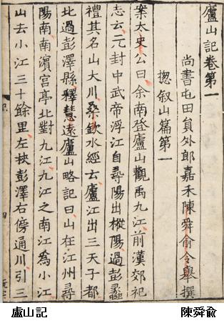* ①恵遠(慧遠)法師(334~416年): 4世紀、高僧慧遠は廬山に東林寺を建てた。慧遠は太元9年(384年)の来住以来、一生、山外に出ないと誓いを立てたとされ、そのことにちなんだ「虎渓三笑」の説話の舞台もこの山である。また慧遠は蓮池を造り、その池に生える白蓮にちなんだ「白蓮社」と呼ばれる念仏結社を結成したとされ、中国の浄土教の祖とされている。
