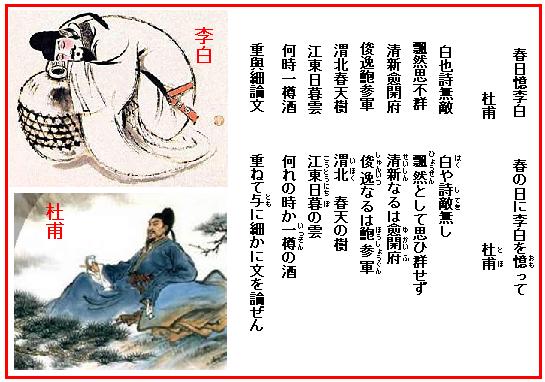 天宝元(742)年秋、都長安に出てきた李白(701~762年)は、その文才を認められて玄宗の宮中に召されたが、天宝三載(744年、この正月、年を載に改めた)3月讒言に遇い宮中を追われた。4月洛陽を通った李白に杜甫は初めて会い、この年と翌年にかけて河南や山東の地方を、時には同じく詩名のあった高適(こうせき、707~765年)も交えてともに放浪の生活を送ったことがある。2人が実際に親しく交際したのはこの時限りで、李白が江南の地に去り、杜甫も長安に出て、その後再び会うことはなかったが、杜甫の李白に寄せる友情は終生変ることは無かったと言う。