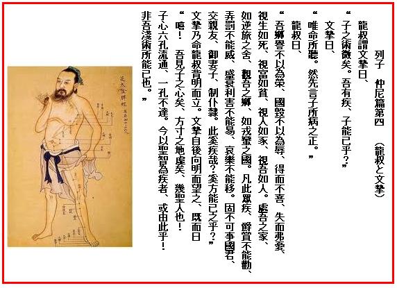 「ああ、私はあなたの心を診察しました。あなたの心のある場所は空っぽになっています。精神とほとんど同じです。ただあなたの心臓にある六つの穴は、うまく疎通していますが、一つの穴だけ塞がっています。あなたは今聖人の悟りの境地にありながら病気だと思っておられるのも、そのせいであるかも知れません。これは私の未熟な医術で治せる病気などでは到底ありません」