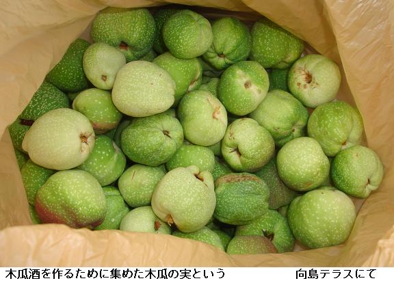 昼食後、隅田川を徘徊。向島のテラスで木瓜の実を集めている人に会う。梅酒と同じようにして木瓜酒を作るのだそうだ。