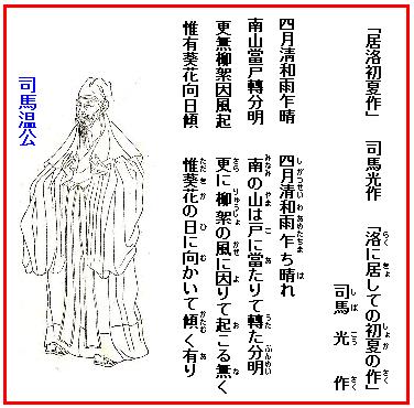 斉物子と号し、温国公、温公などと称された。王安石の新法による政治改革に反対した側の急先鋒であり、旧法党の代表。やがて宰相になると、王安石の新法を廃して旧法に復した。この詩には宰相となって旧法に服したすがすがしさを詠いこんでいるとも言われる。