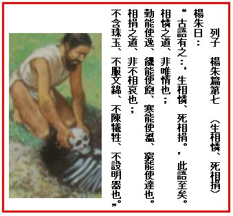 また、「放ったらかす」ということのやり方は、死者に哀悼の気持ちを持たないと言うのではない。使者に珠玉(たま)を含ませるような無駄なことをせず、彩錦(あやにしき)を着せたり、犠牲を並べ立てたり、埋葬の器物を準備したりするような虚礼をすべて已(や)めるという意味である。