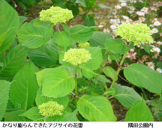 アジサイの花蕾が随分大きくなってきた。まもなく、隅田公園いっぱいにアジサイが彩りを添えてくれることであろう。