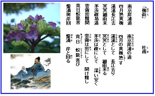 中国語の「紫陽花」は、中国の招賢寺という寺にあった名の知れぬ山樹に咲く花で、色は紫、芳香を放つ仙界の麗花であった、と言われ、日本のアジサイとは何の関係もないものであるという。