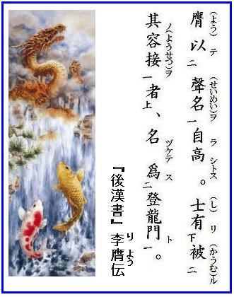 昨日は5月の第2日曜日、『母の日』なんだそうだ。何でもかでもアメリカさんの真似をする日本人、カーネーションを贈るのもアメリカさんの物まねらしい。悪いことではないから、目をつぶることにしよう。まあ、爺も母の日に因んで、後漢書から中国版「養老の滝」=「涌泉躍鯉」を紹介しよう。