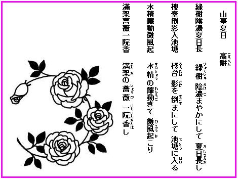 「薔薇」という漢字は、音読みで「そうび」「しょうび」と読まれてた。漢字の「薔薇」は墻靡(垣根にまとわりつくという意味)の当て字といわれている。