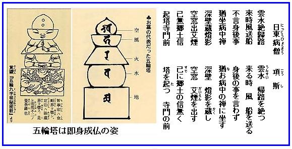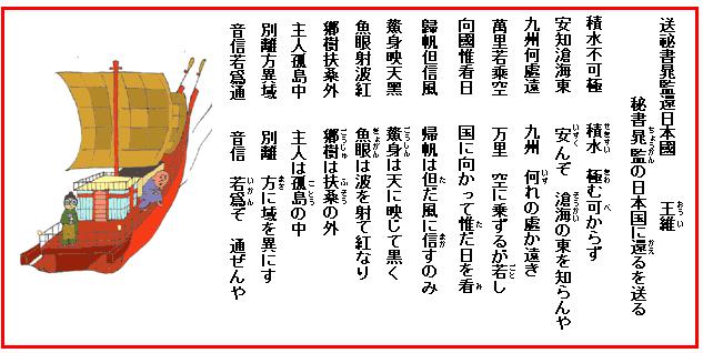 故国へ帰る道を絶つ雲と水/来る時は風が船を送ってくれたのだが/あとあとの遺言も残さず/まだ病中の身で座禅三昧/暑い壁が燈火(ともしび)の光をかくし/人影の無い窓から艾の煙が流れ出るばかり/郷里への便りももはや書かず/寺の門前に墓を作っているとか