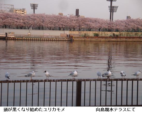 ユリカモメという名前の由来は①百合の花のように美しいからという説や、②「入り江かもめ」が転じたという説、さらには③川沿いに内陸にまで飛んでいくことがあるので、ユリ(奥地)のカモメを語源とする説などがあるらしい。形状が似ていないこの鳥を見て百合の花を連想することは考えにくいこと、海というより川沿いに飛ぶことから入江説も考えがたいことから、③の(ゆり)=(奥地)説を採りたい。京の奥地の谷間を飛んで賀茂川にやっと来た鴎というのが妥当のように終える。いやはやこれは爺の牽強付会に過ぎようか?