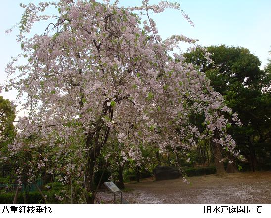 旧水戸庭園を抜けて隅田川をひと回りしてきた。池の水面は桜の花びらとゴミが混ざり合って汚れている所為か、白鳥も岩の上で水の中に入るのを躊躇っているようであった。五葉松があったので、近寄ってみると、なるほど葉は5枚ずつが束になってついている。名前の如く薄紅色をした「八重紅枝垂れ」が綺麗。