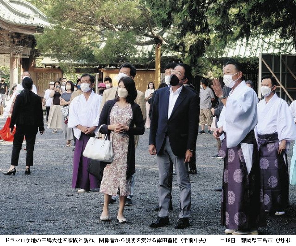 17日から静岡県伊豆の国市の温泉旅館に家族で宿泊。18日は三嶋大社や「大河ドラマ館」を訪れ、毎週欠かさず見ているというNHK大河ドラマ「鎌倉殿の13人」ゆかりの地を記念撮影しながら巡った。