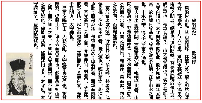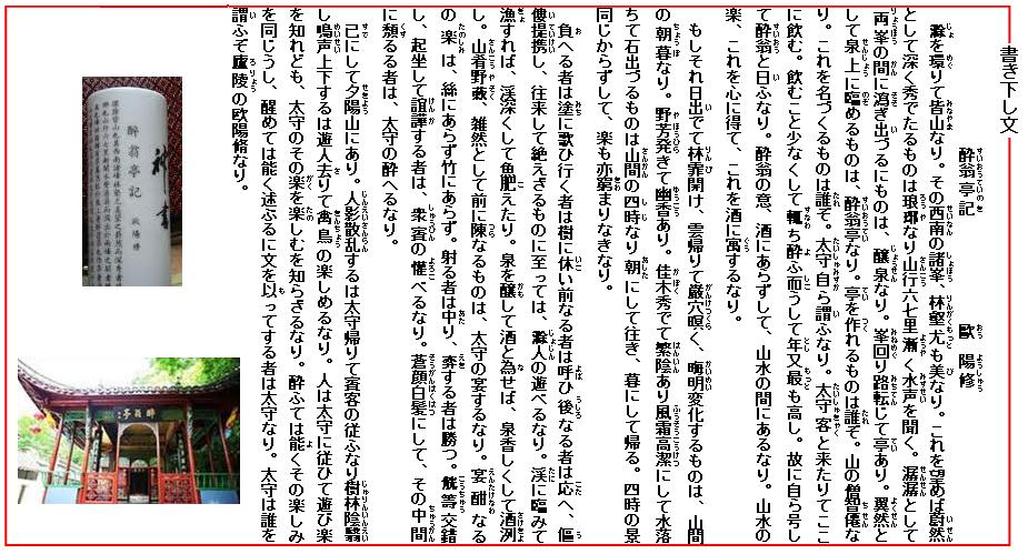 以下の「酔翁亭記」は滁州の知事に左遷された欧陽脩40歳の時の作である。