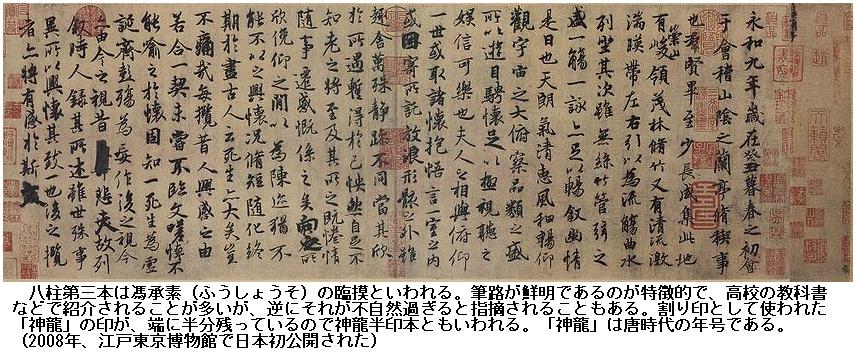 2・3年前、今北京故宮にあるを国外不出の国宝の書の何点が展示された「北京故宮・書の名宝展」が東京・江戸東京博物館開催されたとき、横浜在住のIN氏と連れ立って、この蘭亭序(八柱第三本)を見に行ったことがあるのを思い出す。