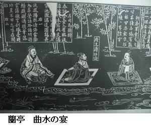 永和九(353)年、癸丑(みずのとうし)の年、晩春三月の初め、会稽郡山陰県(浙江省紹興)の蘭亭に集まった。禊の行事を行うためである。優れた人物たちはすべて着き、老いも若きも皆集まった。この地には、高い山、険しい峰、茂った林、丈高い竹があり、また清らかな流れに激しい早瀬があって、あたりに照り映えている。この流れを引いて、觴(さかずき)を流す曲水とし、人々は順次並んで岸に坐る。琴や笛の賑わいはないが、一杯の酒ごとに一首の詩と、自然を愛でる情(こころ)をのびのびと示すには十分である。