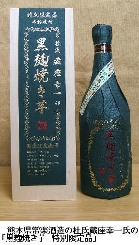 熊本県常楽酒造の杜氏蔵座幸一氏の極みの一品でどこにも売ってないほどのレアな限定品だという。国産の中でも特に原料に拘り、焼き芋に使われる紅東を使い、蒸さずに焼いて香ばしい香りと甘さが絶妙にバランス よく出来ていてのど越し良く、余韻も十分に味わえる拘りの一品だという。
