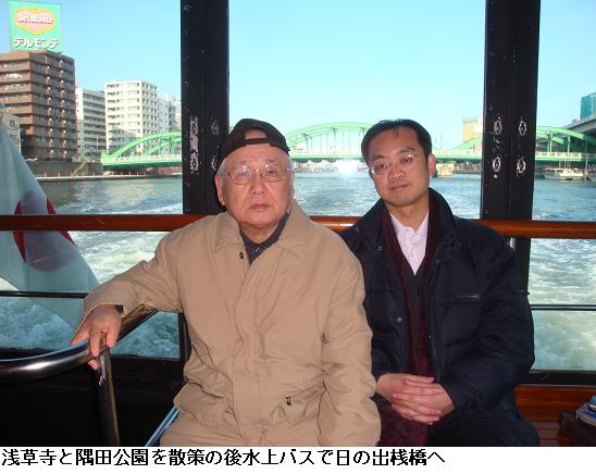 午前11時、雷門交番前でshinさんと待ち合わせ、仲見世から浅草寺、ロックを案内、昼食を食い、隅田公園のテラスを言問橋~吾妻橋まで歩く。水上バスで日の出桟橋へ、増上寺を案内して、大門で再会を約して、shinさんは蒲田へ、爺は淺草へと別れた。Shinさんは爺を何かと立ててくれたが、いやどうして、学ぶことは此方のほうが多いように思えた。
