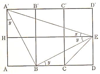 ∴ △ABEは直角二等辺三角形。 よって x+y=∠A’EH+∠HEB=∠BEA’=45°