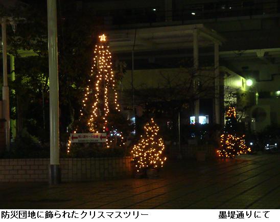 午前5時、桜橋を渡り、墨堤通りを東白鬚公園の北ゲートまで北上。防災団地の中ほどの入口にクリスマスツリーが飾られている。公園に入ると梅若橋の下を潜って水神大橋を渡る。隅田川沿いの遊歩道を南下。明治通りを横切ると橋場・今戸のテラスを南下して帰宅。徘徊の道筋はその殆んどが夜道。橋場・今戸のテラス付近で漸く夜明けとなる。