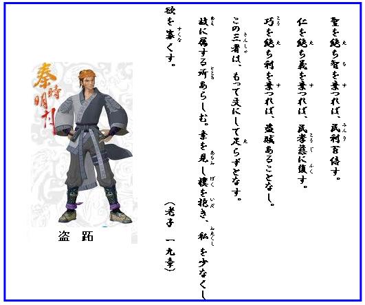 ことほど左様に、盗賊の心も聖人の道をたよって流行るのである。さて、老子にはいう、「聖を絶ち智を棄てれば民利は百倍する」(老子一九章)――
