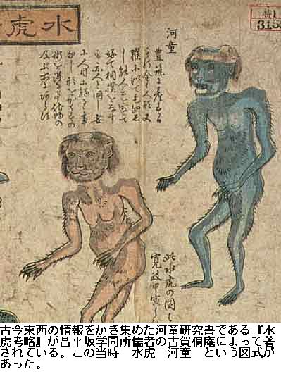 因みに、古賀侗庵(1788~1847年)は寛政の三博士の一人である古賀精里(1750~1817年)の三男であり、字は季曄、号を侗庵・古心堂などと称し、父精里に随い江戸で勉学して幕府儒者見習いとなって昌平黌に出仕し、佐賀藩江戸屋敷で藩士に教授した儒者である。古賀氏は本姓は劉、帰化人の後裔で、代々が肥前に住み佐賀藩士であった。/また侗庵は詩会「如蘭社」を主宰した。メンバーには江木鰐水、関藤藤陰、頼杏坪、頼山陽、宮原龍、津田終吉(津田賁)など約50名がいた。/著書の『海防臆測』(上・下 天保10年頃 (1839頃))は、ロシア問題に深い関心をもっていた侗庵が、わが国の海防とくにロシアに対する備えの必要とその方法を漢文で記したもの。また、『水虎考略』(天保7年(1836) 霊槐書写)は、水虎=河童の関する著述で、原本を侗庵が文政3年 (1820) にまとめた。天保10年(1839)に再び侗庵によって、より多くの文献から河童譚を集めた『後篇』2冊も編まれた。