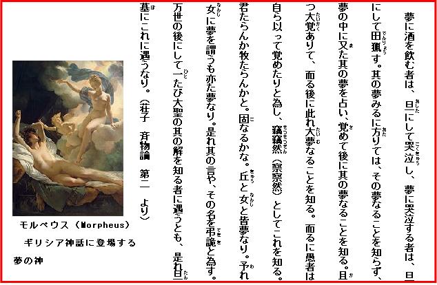 この爺は一体全体一日をどのように過しているのだろう。是と非、夢と現実、生と死などの対立 ―― そのいずれが真の世界であるかを論ずるよりも、いずれをも肯定して受け容れ、それぞれの場で満足して生きればよいのであろう。醒めては夢の如く、生きては死せる如く、身終われば根元に戻るのである。