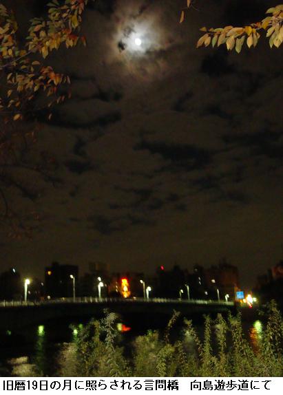 11月18日(木)は少々2日酔いで、徘徊はやめ。その翌日も惰性で徘徊取り止め。何だか腰が重く、これは朝の徘徊をサボった所為だと、19日(金)は5時前には家を出て桜橋から墨堤通りを北上、北ゲートから東白鬚公園に入り、水神大橋を渡って、帰宅したが、徘徊の大半は夜道。随分と火が短くなったものだ。