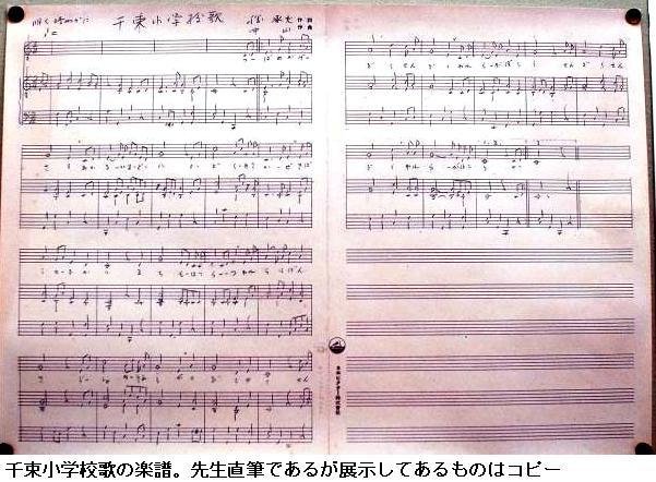 そして、千束小学校の校歌も中山の作曲したもので、その楽譜も展示されています。1952年に作曲した校歌は中山最後の作品となりました。千束小学校の木村和夫校長は「(子どもたちは)こういう偉い先生がうちの学校にいたんだということで誇りに思っております。(校歌が)好きで、よく大きな声で歌っています」と話します。/地元の町会などでは偉大な作曲家の足跡をもっと地域活性化に生かせないかとイベントなどの企画も模索しているといいます。記念室は見学可能ですが、事前に学校への予約が必要だということです。