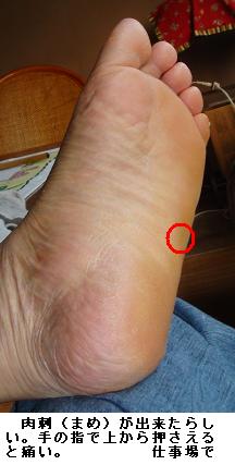 昨日は寝過ごしてしまい、徘徊を取り止めた。起き抜けにベッドから立ち上がると左足の裏に違和感。歩いてみると少々痛い。右ひざの上に足首を載せて手の指で押さえてみると痛い。知らぬ間に肉刺(まめ)が出来たらしい。まあ、2・3日放っておけば何とか癒るだろう。