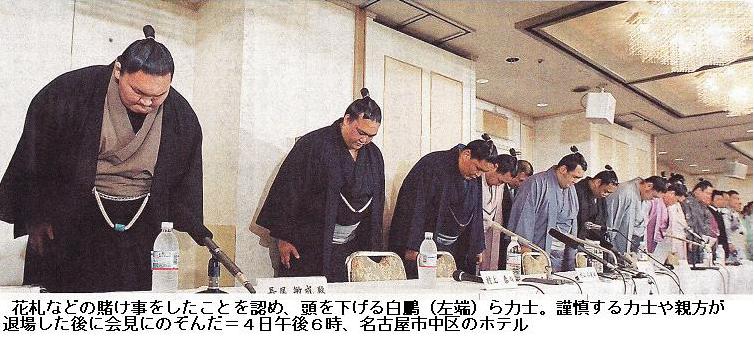 あの力士どもを一列に並ばせてのお詫び会見はなんだ。まるで茶番じゃないか。これも外部理事のやらせたことなのか?
