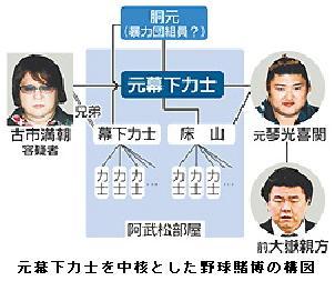 大相撲:野球賭博 貴乃花理事が退職願 琴光喜関の解雇反対 理事長ら慰留 ―― 大関・琴光喜関への処分を巡り、解雇に反対した日本相撲協会の貴乃花理事(37)=元横綱=が4日の理事会で、村山弘義理事長代行に協会への退職を申し出ていたことが同日、明らかになった。結論は保留されたが、歴代5位の22回幕内優勝を果たして引退後も人気絶大な貴乃花親方。退職すれば、不祥事が続く協会が最後のとりでを失い、協会のイメージダウンは必至。人気回復の道は極めて険しくなる。/理事の任期途中での協会退職は68年に始まった現行の理事公選制以降なく、前代未聞の事態。複数の出席者への取材によると、貴乃花親方は理事会の途中で立ち上がり、退職届を村山代行に手渡した。/武蔵川理事長らが「みんなに支持してもらって理事になったのに、何で投げ出すのか」と慰留し、結論は先送りされたという。/3日に幹部が集まった理事会、評議員会の打ち合わせでも、貴乃花親方は「幕内最下位から取らせればいい」と提案。この日も「大関まで頑張ったんだから、協会に残してチャンスを与えるべきだ」と主張した。/だが外部理事から「大関だから責任が重い」と反論されて主張が通らず、解雇が決まった。 (毎日新聞 2010年7月5日 東京朝刊)