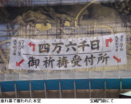 誰が数えたか知らないが米一升分は米46000粒で、この日に観音様へ詣でると「一升(一生)喰いぱずれがなく、息災に過せる」とか、千日参りだから四六時(1日)の千日分で四万六千だとかいろいろな説があるようだが、孰(いず)れ誇張の類(たぐい)に相違ない。特に後者にいたっては1日が四六(=24)時になったのは西洋から時計が入ってきてからのこと、江戸時代は1日十二刻で二六時であるはず、辻褄(つじつま)が合わない。