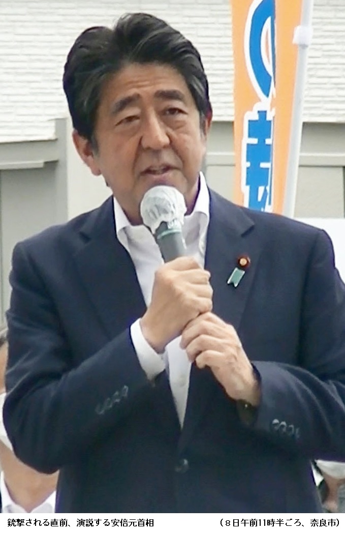安倍氏は8日午前11時半ごろ、奈良市内の路上で演説をしていたところ、男に背後から銃撃された。右首と左胸を負傷し、病院に運ばれた。現場近くにいた警察官が男を取り押さえ、殺人未遂容疑で現行犯逮捕した。