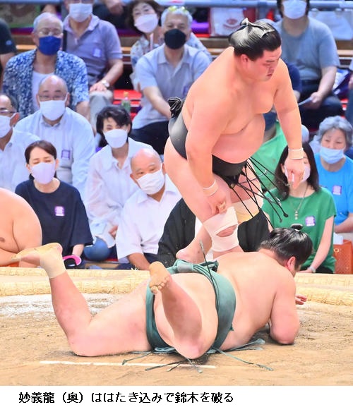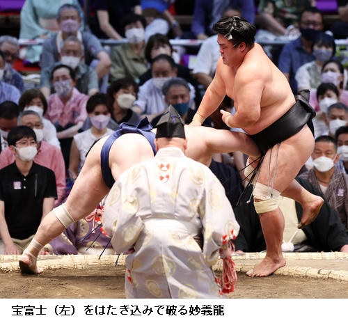 ▽妙義龍に宝富士は妙義龍がはたき込み。