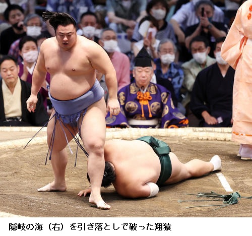 ▽隠岐の海に翔猿は翔猿が引き落とし。