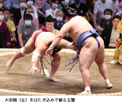 ▽玉鷲に大栄翔は玉鷲がはたき込みで勝ちました。