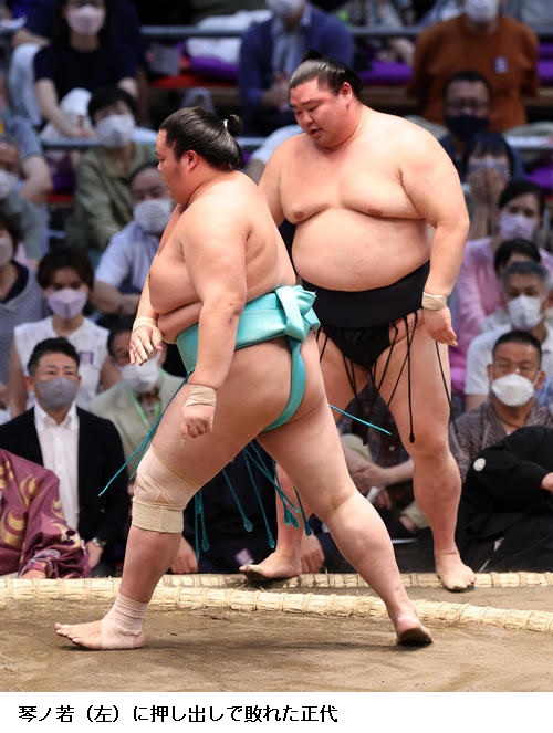 ▽琴ノ若に大関 正代は琴ノ若が押し出し。角番の正代は初日黒星です。