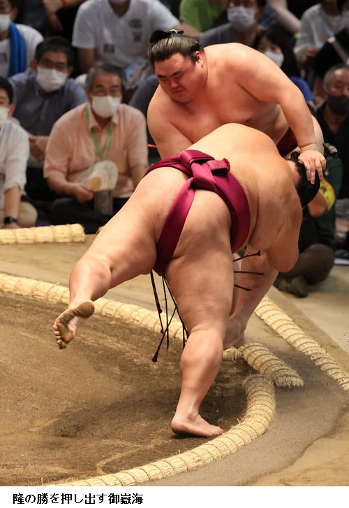 ▽隆の勝に大関 御嶽海は御嶽海が押し出し。
