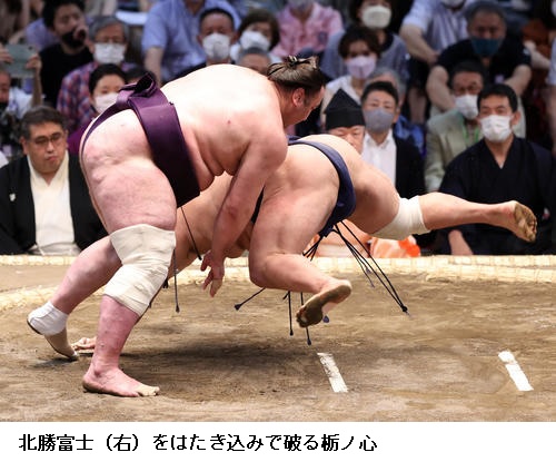 ▽栃ノ心に北勝富士は栃ノ心がはたき込みで勝ちました。