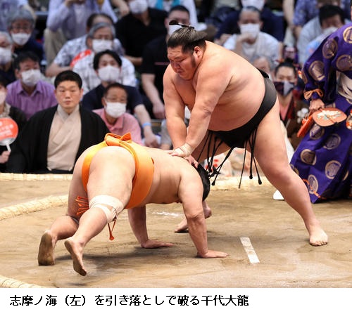 ▽千代大龍に志摩ノ海は、千代大龍が引き落とし。
