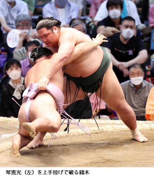 ▽錦木に琴恵光は、錦木が上手投げ。