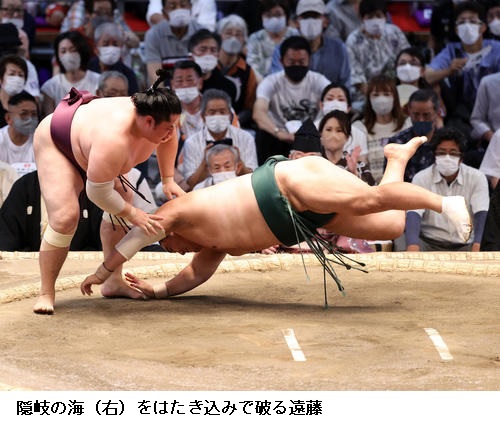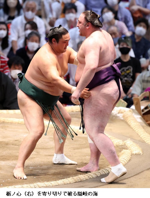 ▽栃ノ心に隠岐の海は、隠岐の海が寄り切りで勝ちました。