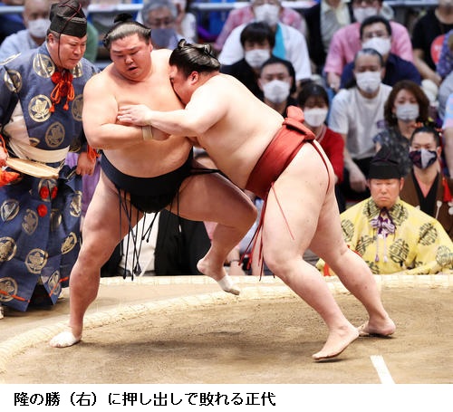 ▽大関 正代に隆の勝は、隆の勝が押し出し。角番の正代は2連敗です。