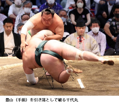千代丸は、5勝目を挙げましたが返り入幕での負け越しが決まっていて「負け越したのはしかたがないので、来場所に続く相撲がとれるように最後まで頑張る」と淡々としていました。