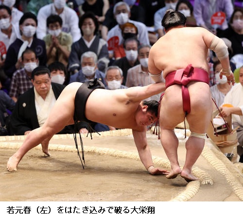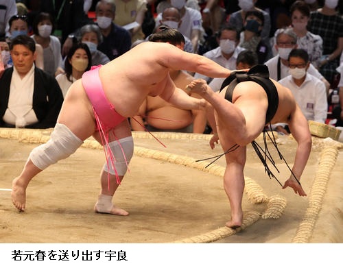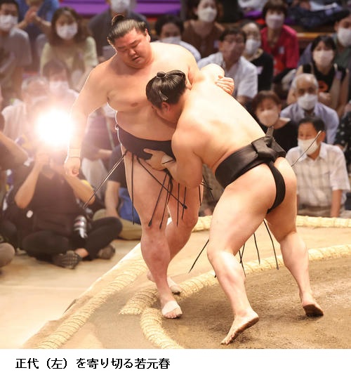 ×若元春 思っている感じでこなかった。当たってしっかりまわしを取ろうと思ったんですけど、届かなくてゴタゴタになってしまった。突き押しは全然、頭になかったですね。初日の相撲としては全然ダメ。立ち合い自体は悪くなかったので、意表をつかれた。